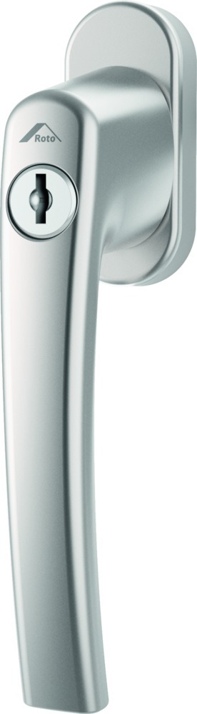 ROTO Fenstergriff RotoLine; Material: Aluminium; Vierkant: 7mm; Befestigungsart: verdeckt verschraubt; Befestigungstechnik: mit Stütznocken; Lieferung: mit Schrauben,mit Vierkantstift; Einsatzbereich: Drehkipp; Basis: Fenstergriff; Ausführung: abschließbar,mit Drehzylinder; DIN-Richtung: DIN Links-Rechts; Nockendurchmesser: 9,7mm; Sockelbreite: 28,6mm; Sockelhöhe: 65,6mm; Sockelstärke: 13mm; Stift vorstehend: 40mm; Befestigungsabstand: 43mm; Funktion: Standard; Norm: DIN EN 13126-3; Oberfläche: eloxiert; Farbton: silber; Rastung: 90°; Schließfunktion: Wendeschlüssel,gleichschließend; Drehmoment: 40N; Schlüssel Anzahl: 1St.; Fensterwerkstoff: Kunststoff,Aluminium,Holz; Sockelausführung: mit ovaler Rosette