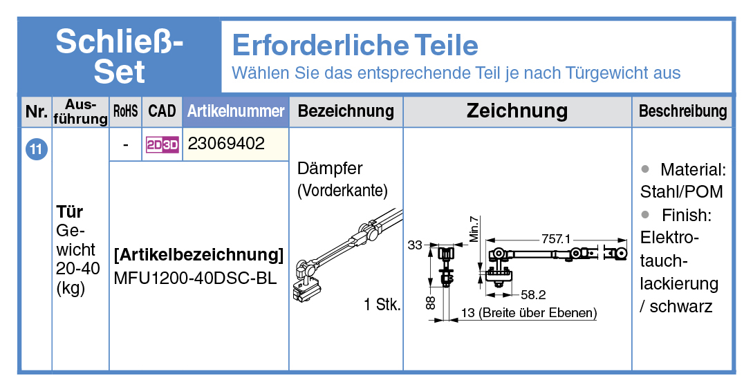 Schließ-Set für Türflügelgewicht 20-40kg, passend